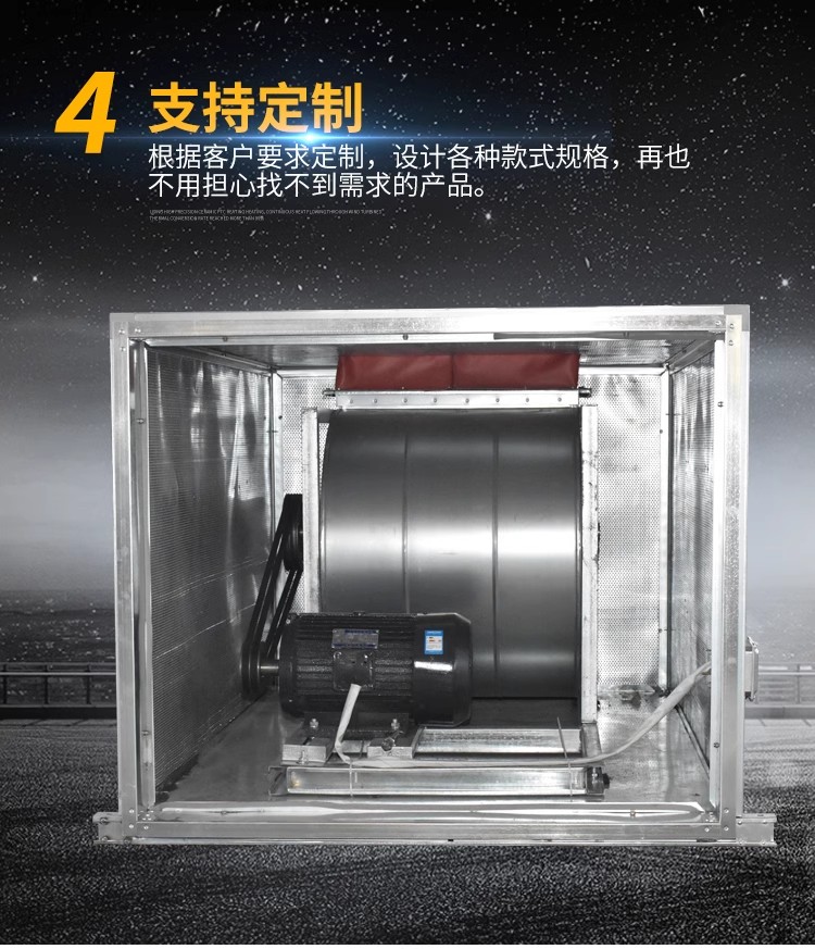 4、HTFC系列消防(通風(fēng))兩用低噪聲模式離心風(fēng)機(jī)分為A型 和B型兩種類型,A型電機(jī)裝在箱體外,用于消防排煙;B型電機(jī)裝在箱體內(nèi),用于通風(fēng)換氣。