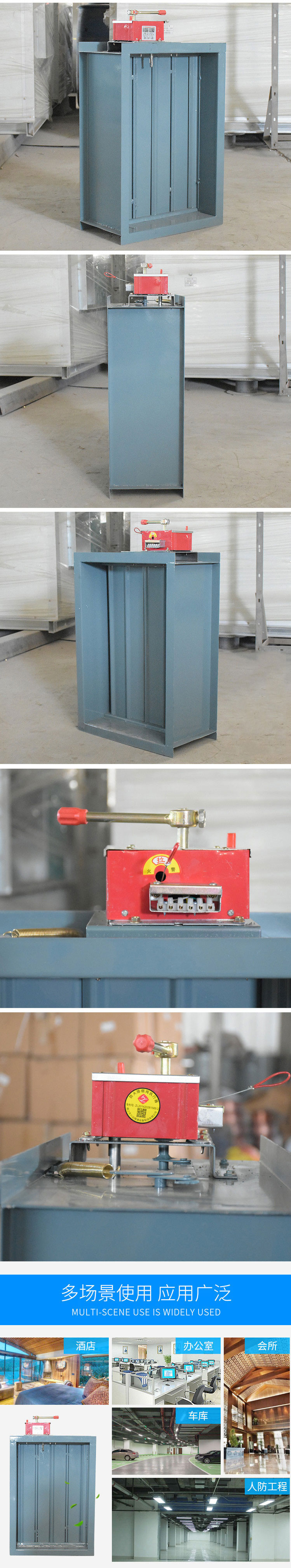 防火閥是一種常閉型閥門,由控制中心通24V直流電開啟或手動開啟,在280℃時自動關(guān)閉,復(fù)位必須手動。它的作用是:當(dāng)煙氣溫度達(dá)到280℃時,人已基本疏散完畢,排煙已無實際意義,而煙氣中此時已帶火,閥門自動關(guān)閉,以避免火勢蔓延。系統(tǒng)的排煙風(fēng)口也可以用常閉型的防火排煙口,取消支管上的排煙防火閥?;馂?zāi)時,該風(fēng)口由控制中心通24V直流電開啟或手動開啟,當(dāng)煙溫達(dá)到280℃時自動關(guān)閉,復(fù)位也必須手動。排煙風(fēng)機房入口也應(yīng)安裝排煙防火閥,以防火勢蔓延到風(fēng)機房所在層。