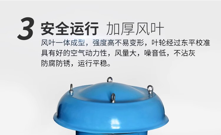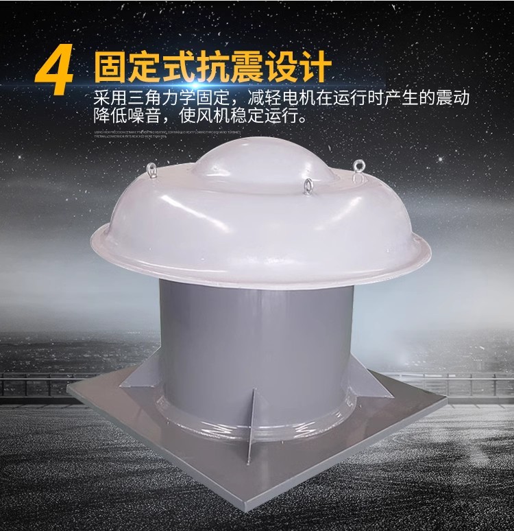 3、屋頂風機出口的管徑只能變大、不能變小,后出風口要安裝防蟲網,偏向上出風時須增加風雨帽;如遇冬季下雪,冰凍日期,必須經常開動,以防大雪堵塞風機出口。
