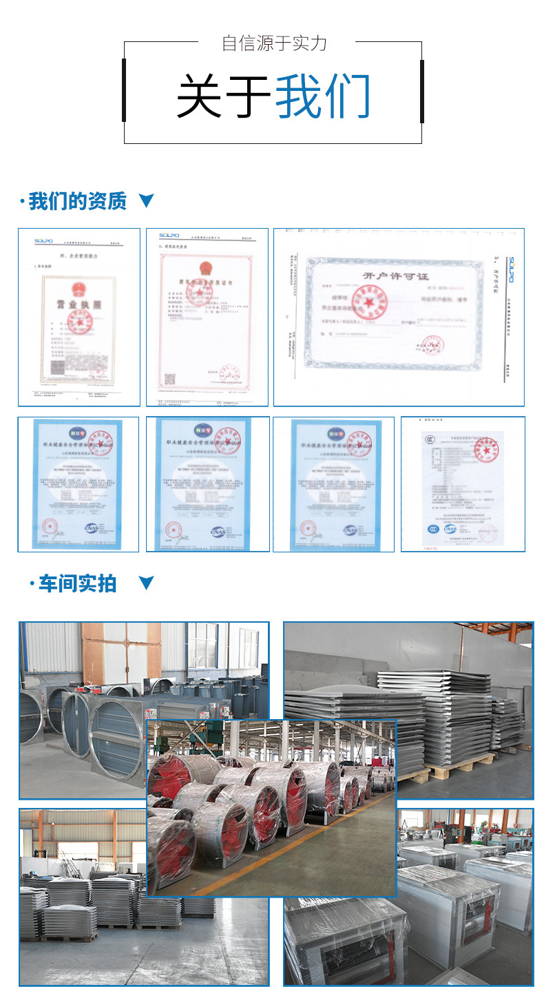 T35型軸流風機按葉輪直徑共分為13個機號,依次排列為:№2.8、3.15、3.55、4、4.5、5、5.6、6.3、7.1、8、9、10、11.2。軸流風機每一個機號又分為15°、20°、25°、30°、35°等5種葉片安裝角度。各機號均采用葉輪與電動機直連結構。軸流風機在葉輪圓周速度不超過60m/s條件下,配用3種轉速:2900、1450、960r/min,進氣方向在軸流風機的葉輪一側。