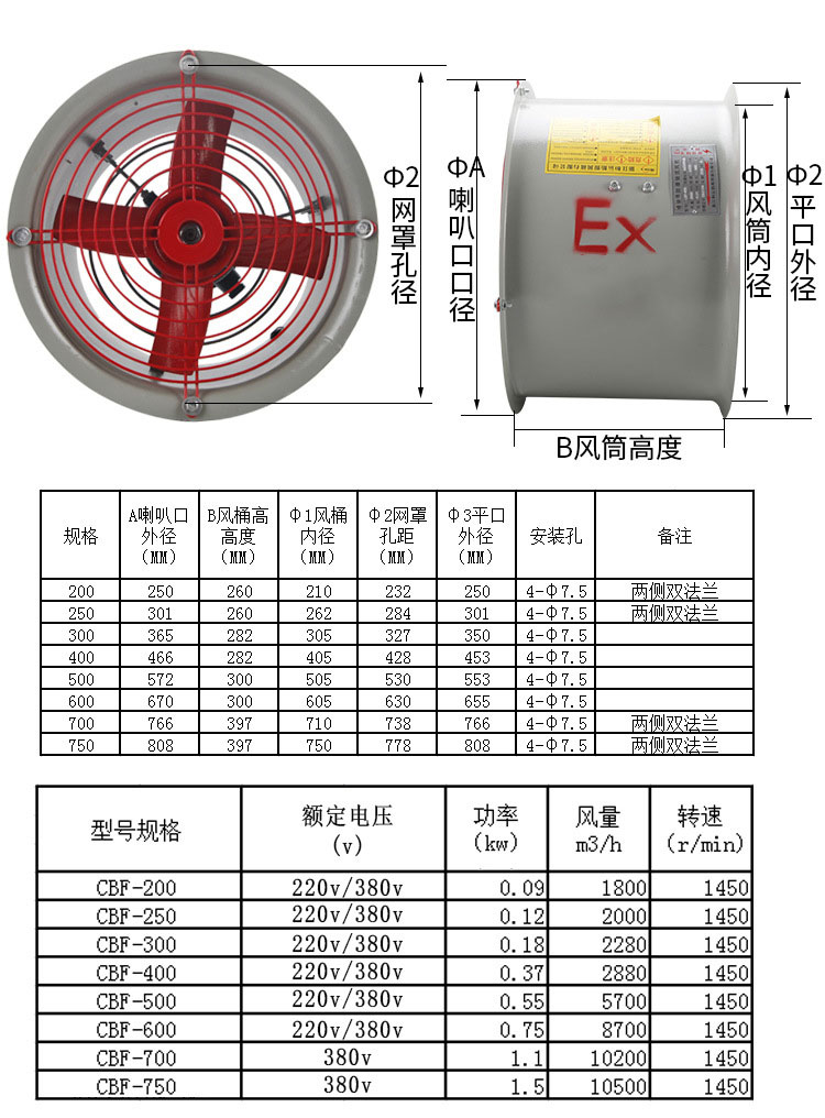 適用與輸送易燃易爆無腐蝕性氣體,環境溫度不得超過60℃,廣泛應用于一般工廠、倉庫、辦公室、住宅內通風換氣或強暖氣散熱,也可有較長的排氣管道內間隔串聯安裝,以提高管道中的壓力,卸下電機可做自由風扇。防腐軸流式風機(FT35-11型),采用防腐材料外涂環氧漆加工而成,電機采用特種防腐電機用于輸送有腐蝕性氣體。防爆軸流式風機(BT35-11型),用于輸送易燃易爆的氣體。適用于溫度組別為T1~T4的環境;葉輪由鋁合金加工而成,以防止在運轉中引起火花,電機采用隔爆型電機。FT35-11型和BT35-11型風機的性能參數和外形尺寸均同T35-11型風機一樣。風機需帶支架腳和電機電壓。